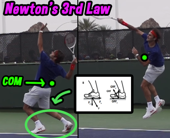 Furthermore, the acceleration phase relies upon COM and Newton’s Third Law, “[f]or every action, there is an equal and opposite reaction” (Blazevich, 2017, p. 45). Evident in Figure 8 as both an angular posterior-inferior impulse is produced and the player’s COM is manipulated, time over which torque can be applied increases (Kovacs & Ellenbecker, 2011; Blazevich, 2017). Resultantly, the angular impulse applied also increases (τ.t), enhancing angular momentum under the proportional angular impulse-angular momentum relationship (Blazevich, 2017). Hence, Kovacs & Ellenbecker (2011) documented a small vertically directed impulse is often observed amongst professional players whilst player COM transitions anteriorly, increasing racquet height and subsequent torque generation.